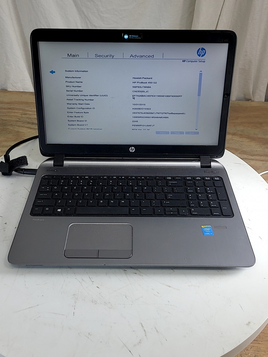 $make offer - Qty 1 HP PROBOOK 450 G2 - i3 4th gen - 8GB - NO HD - 1 x crackedplastic - all with battery and power supply